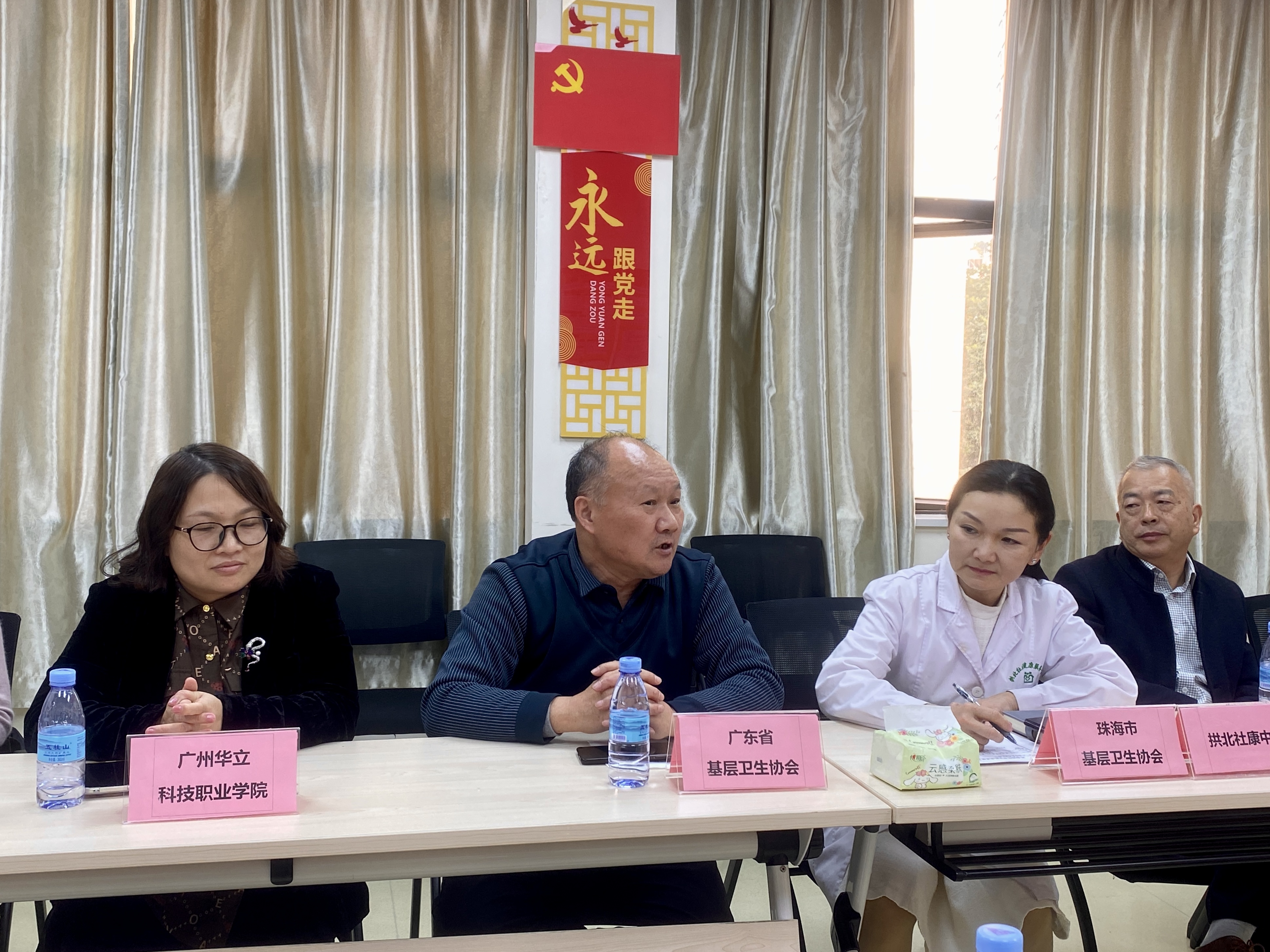會議在珠海市中西醫(yī)結(jié)合醫(yī)院拱北社區(qū)健康服務(wù)中心舉辦。會議上,廣東省基層衛(wèi)生協(xié)會和珠海市基層衛(wèi)生協(xié)會的會長首先對來自珠中地區(qū)的9家社衛(wèi)中心負責(zé)人及我校到場人員表示熱烈的歡迎。同時提出,為進一步加強廣東省珠中地區(qū)基層醫(yī)衛(wèi)人才的培養(yǎng)與管理,推動地區(qū)衛(wèi)生健康事業(yè)的高質(zhì)量發(fā)展,特地舉辦本次機構(gòu)與高等職業(yè)院校的座談,旨在讓一線的社衛(wèi)中心醫(yī)務(wù)工作人員對產(chǎn)教融合、學(xué)歷背景提升、持續(xù)進修等多方面起到更深的認識 ,從而全面提升基層醫(yī)療工作人員的綜合能力。
