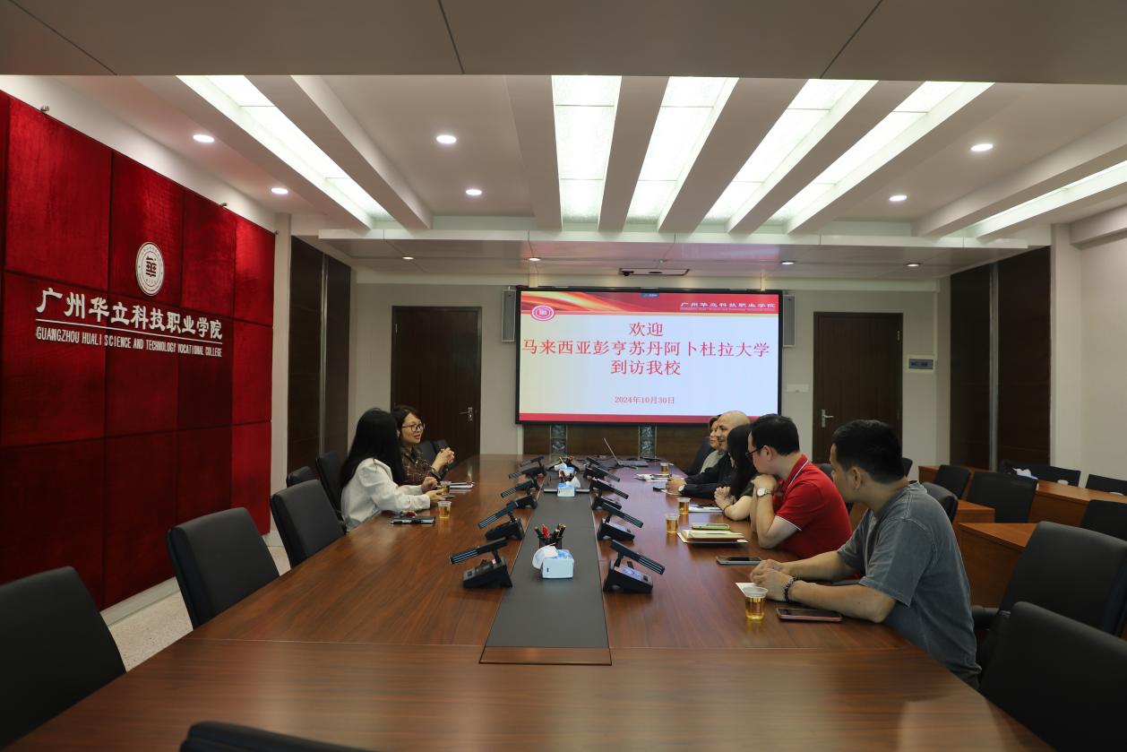 2024年10月30日,馬來西亞彭亨蘇丹阿卜杜拉大學(UMPSA)一行到訪我校,就將來可能開展的英語語言中心項目、碩博學歷提升項目、雙院聯(lián)合培養(yǎng)項目等進行洽談。廣州華立科技職業(yè)學院常務副校長馬俊、人事處副處長陳茜、國際交流中心副主任劉婕出席會議。