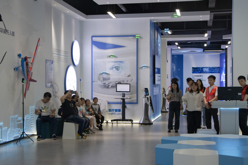踏入人工智能館,科普講解員以通俗易懂、妙趣橫生的語(yǔ)言闡釋了AI的核心原理,通過(guò)與智能語(yǔ)音助手的互動(dòng),揭示了機(jī)器思考的方式。從日常生活中智能化應(yīng)用的實(shí)例出發(fā),拉近了大家與未來(lái)科技的距離。為更深入地理解科技的力量,借助VR眼鏡,邀請(qǐng)參觀者體驗(yàn)成為外科專家,沿著血脈經(jīng)絡(luò),虛擬仿真成功完成外科手術(shù)。借助無(wú)人機(jī),配合炫彩燈光,觀賞鋼鐵精靈上演的精妙絕倫的空中芭蕾,激發(fā)參觀者對(duì)科學(xué)知識(shí)的興趣與熱情。