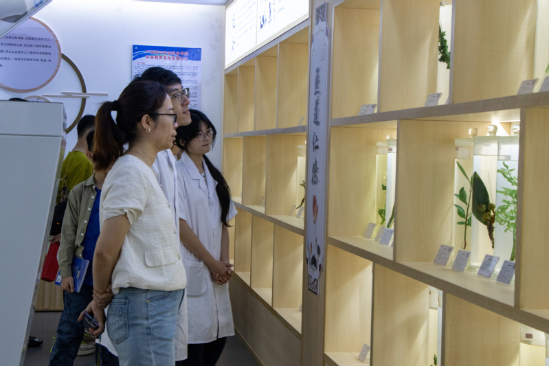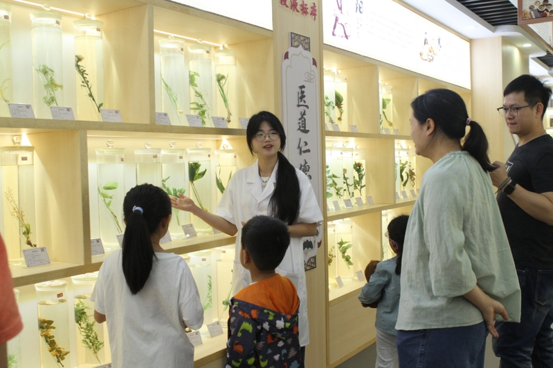 踏入中醫(yī)藥標(biāo)本館,隨著科普講解員的引導(dǎo),參觀者首先體驗(yàn)了自助購(gòu)藥及虛擬配藥系統(tǒng),從實(shí)踐中領(lǐng)略了藥材的多樣性。隨后,通過(guò)觀察浸制標(biāo)本、臘葉標(biāo)本等,讓參觀者深入了解常用藥材的特征及功效,通過(guò)四維影像動(dòng)態(tài)展示常見中草藥從“種子”到“成熟”的全過(guò)程,向參觀者普及藥食同源的健康飲食理念。利用VR虛擬采藥、AR藥圃展示、配藥體驗(yàn)等互動(dòng)方式,拉近中醫(yī)藥與參觀者的距離,加深了大家對(duì)中醫(yī)藥文化的理解與認(rèn)同。