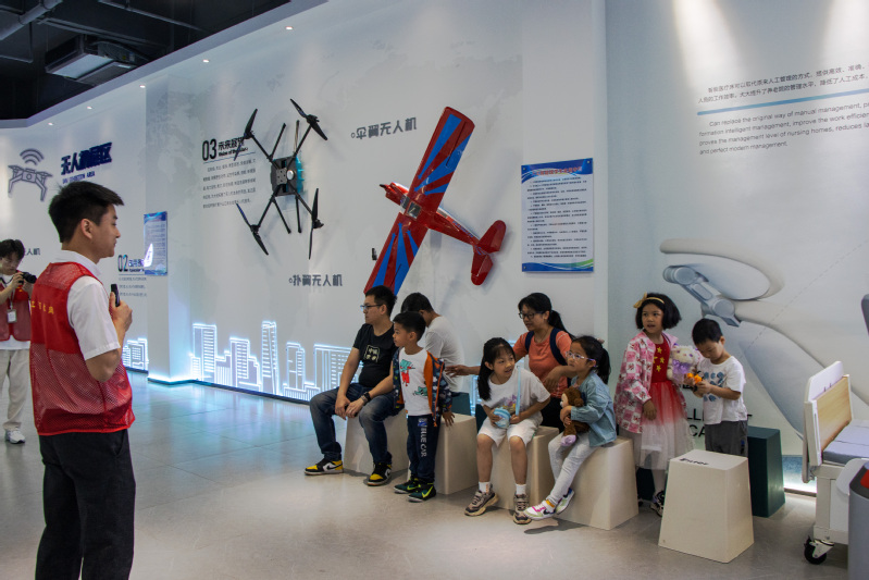 走進(jìn)智能制造館,科普講解員利用展覽板生動(dòng)地向參觀者介紹了大國(guó)制造的演進(jìn)歷程。通過(guò)現(xiàn)場(chǎng)觀摩和編程實(shí)踐,參觀者得以觀察工業(yè)機(jī)器人的內(nèi)部結(jié)構(gòu),并體驗(yàn)其路徑規(guī)劃功能。展示不同型號(hào)的無(wú)人機(jī),科普員向參觀者普及了無(wú)人機(jī)的種類、構(gòu)造以及它們的應(yīng)用場(chǎng)景。通過(guò)虛擬現(xiàn)實(shí)技術(shù),讓更多的參觀者直觀地感受到智能機(jī)械技術(shù)的進(jìn)步。此外,利用3D打印筆制作糖畫,不僅讓體驗(yàn)者在動(dòng)手操作中感受到樂趣,同時(shí)也讓大家對(duì)3D打印技術(shù)有了更深入的了解。