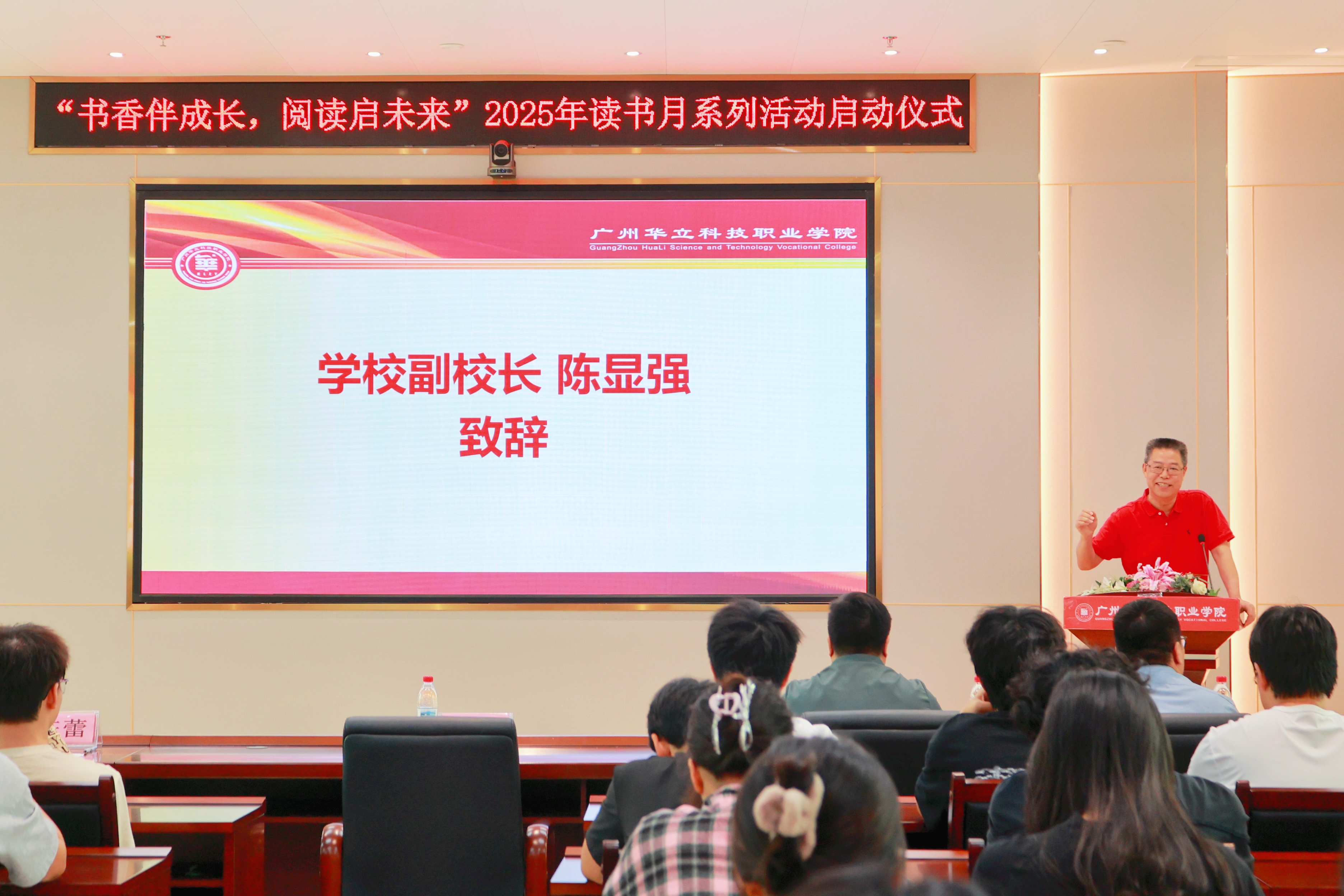 啟動(dòng)儀式上,副校長陳顯強(qiáng)發(fā)表了熱情洋溢的講話。他引經(jīng)據(jù)典,妙語連珠,不僅深入介紹了“世界讀書日”和中國“全民讀書月”的由來,著重強(qiáng)調(diào)國家與學(xué)校對(duì)全民閱讀的高度重視,還結(jié)合自身的讀書學(xué)習(xí)經(jīng)歷,進(jìn)一步闡述讀書對(duì)于個(gè)人成長和國家發(fā)展的深遠(yuǎn)意義。最后,他誠摯呼吁師生要多讀書、讀好書,期望同學(xué)們能夠成為品德高尚、學(xué)識(shí)淵博的人。