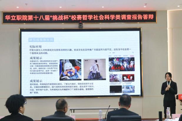 在王繼東、楊瑞光老師共同指導(dǎo)下,陳怡馨、陳芷茵、樊紫清、梁敏嬈同學(xué)完成的《“袖里乾坤大 掌上戲世情”——閩南布袋戲的現(xiàn)代傳承與發(fā)展研究》,立足國家級非物質(zhì)文化遺產(chǎn)保護(hù)的時代課題,聚焦閩南布袋戲這一國家級非遺項目的傳承困境與創(chuàng)新路徑。項目提出以青年創(chuàng)作群體為突破口,通過融合現(xiàn)代審美與數(shù)字技術(shù)激活傳統(tǒng)藝術(shù)生命力的創(chuàng)新路徑。經(jīng)實踐驗證,通過打造沉浸式演出場景、開發(fā)文創(chuàng)衍生品、構(gòu)建新媒體傳播矩陣等實踐,可有效擴大受眾覆蓋范圍。該成果既為破解閩南布袋戲現(xiàn)實困境提供解決方案,更通過守護(hù)文化根脈、增強文化自信提供現(xiàn)實路徑,彰顯傳統(tǒng)藝術(shù)與時代同頻共振的傳承價值。