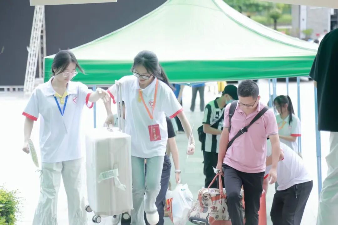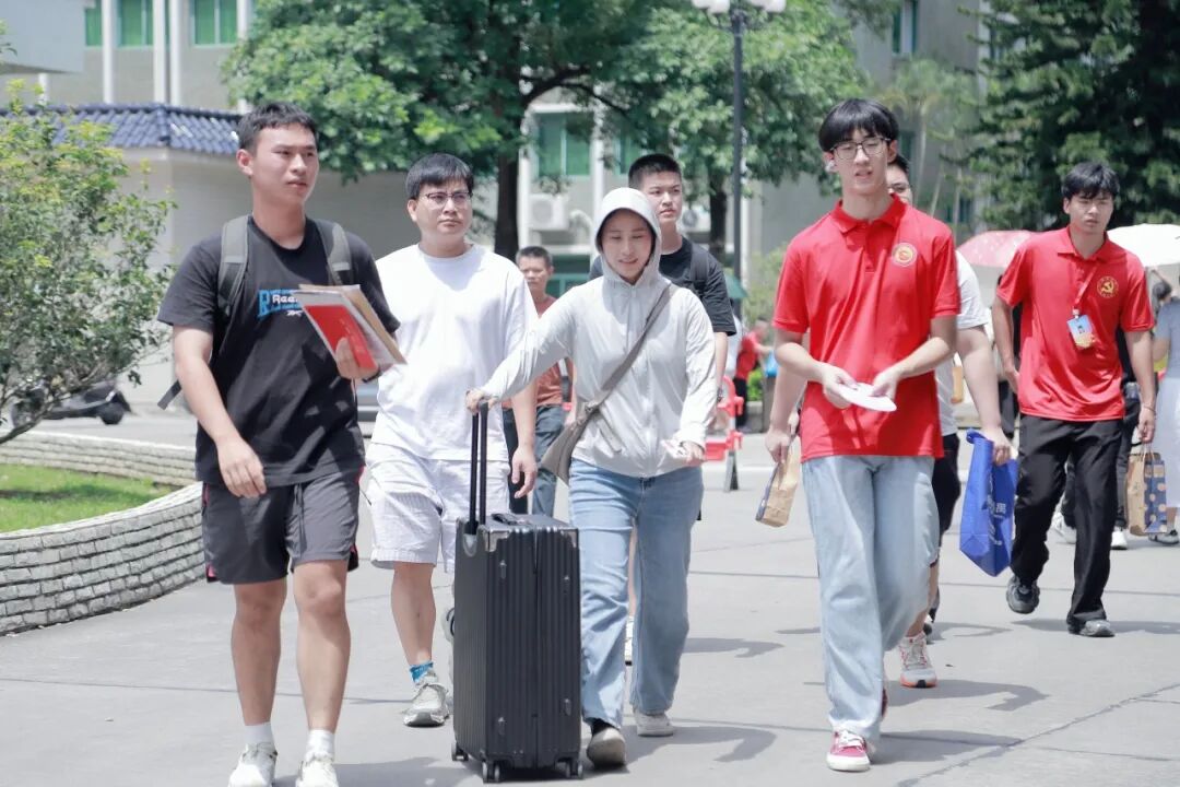 那一聲清脆的“你好”,是最溫暖的開始!迎新志愿者身著統(tǒng)一整潔的服裝,在人群中穿梭著,他們熱情引導新生報到、耐心陪伴辦理手續(xù)、主動幫忙搬運行李、帶路前往宿舍。一句句"我來幫您""請跟我來"的暖心話語,一個個真誠微笑如同夏日里的陣陣清風,悄然消解了初入校園的拘謹與忐忑,讓這段啟程之路浸潤著溫暖與希望。