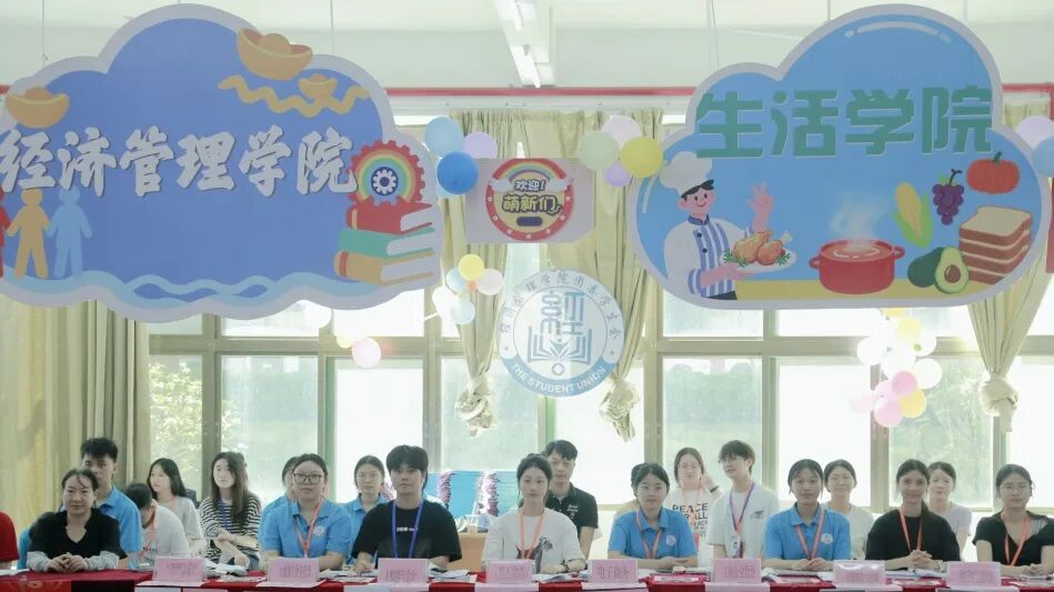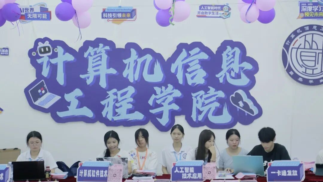 科技樓內,各二級學院報到點標識醒目、特色鮮明,成為迎新現(xiàn)場的一道亮麗風景線。