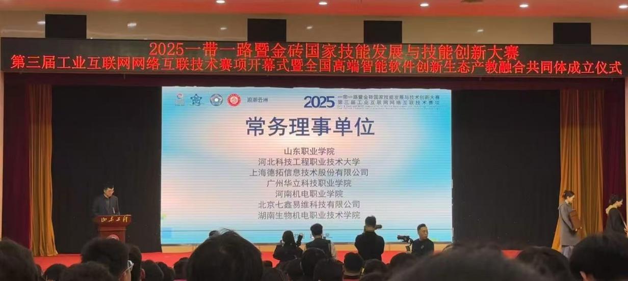 2025年11月7日-9日,2025年“一帶一路”暨金磚國家技能發(fā)展與技術(shù)創(chuàng)新大賽第三屆工業(yè)互聯(lián)網(wǎng)網(wǎng)絡(luò)互聯(lián)技術(shù)賽項全國總決賽在山東工程職業(yè)技術(shù)大學隆重舉行,吸引了來自全國81所院校的132支參賽隊伍同場競技。我校計算機信息工程學院閔小翠、王建華老師指導選派的兩支代表隊(1隊:馮俊杰,劉俊浩、2隊:彭依琳,魏淙正),在全國總決賽賽場上,歷經(jīng)四小時的激烈比拼,最終憑借扎實的專業(yè)知識、科學的團隊協(xié)作,最終脫穎而出,榮獲全國總決賽二等獎1項、三等獎1項,為學校贏得榮譽。我校榮獲“優(yōu)秀組織獎”、兩位指導教師榮獲“優(yōu)秀指導教師”稱號。