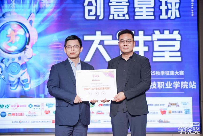 廣告人學院執(zhí)行院長、大廣節(jié)學院獎產(chǎn)教融合委員會主任高鵬銘為廣州華立科技職業(yè)學院頒發(fā)“中國大學生廣告藝術(shù)節(jié)學院獎2025秋季征集大賽·廣告教育推動獎”證書,廣州華立科技職業(yè)學院校長助理李鵬代表學院上臺領(lǐng)獎。這一獎項既是對學院長期深耕創(chuàng)意教育、推動廣告教學與行業(yè)實踐深度融合的認可,更為院校與學院獎攜手賦能青年創(chuàng)意成長進一步夯實了合作基礎(chǔ)。
