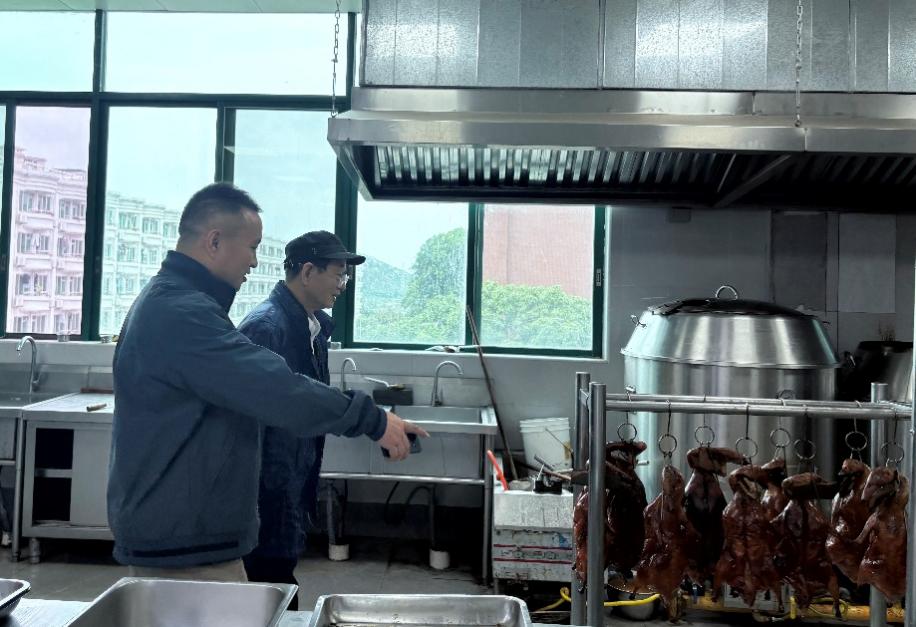 活動伊始,楊銘鐸教授在李春洪院長的陪同下,深入學(xué)校烹飪實訓(xùn)室開展實地考察。楊教授逐一查看中式烹調(diào)區(qū)、中西式面點實訓(xùn)區(qū)、營養(yǎng)配餐實驗室等功能區(qū)域,詳細(xì)詢問實訓(xùn)設(shè)備配置、課程實訓(xùn)開展情況及學(xué)生實操培養(yǎng)模式。針對實訓(xùn)室的功能布局、設(shè)備利用效率和人才培養(yǎng)等方面,楊教授現(xiàn)場給出針對性指導(dǎo)建議,為實訓(xùn)室進(jìn)一步優(yōu)化升級、更好適配教學(xué)與行業(yè)人才需求提供了精準(zhǔn)方向。