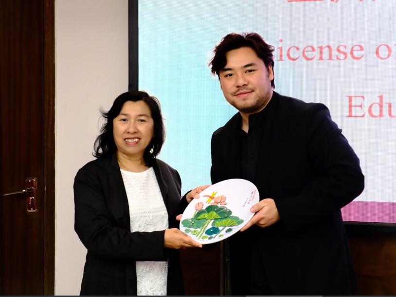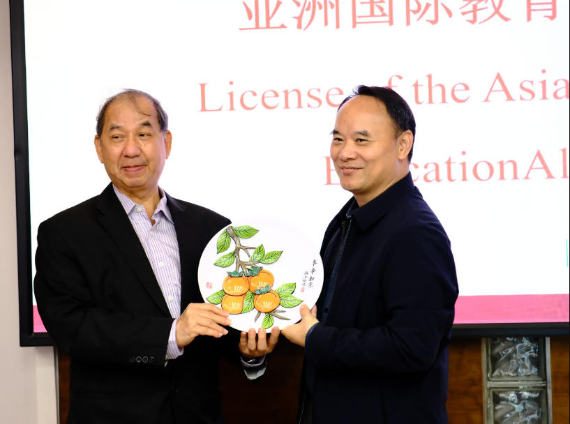 隨后,在與會人員的共同見證下,亞洲國際教育聯(lián)盟秘書長楊華昕授予我?!皝喼迖H教育聯(lián)盟會員單位”,校長廖俊杰代表我校領取授牌。此次授牌不僅是對我校國際化辦學成果的認可,更是學校持續(xù)推進開放合作、積極融入全球職業(yè)教育體系的重要體現(xiàn)。儀式后,雙方互贈了精心準備的禮物。禮物不僅承載著各自的文化特色與美好祝愿,更是友誼與合作的象征,為此次訪問留下了難忘的紀念。