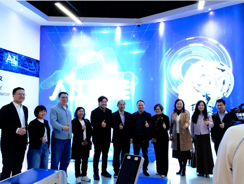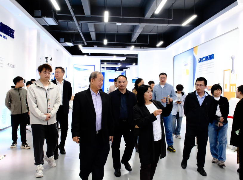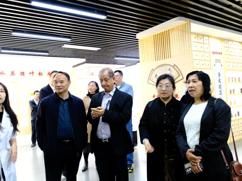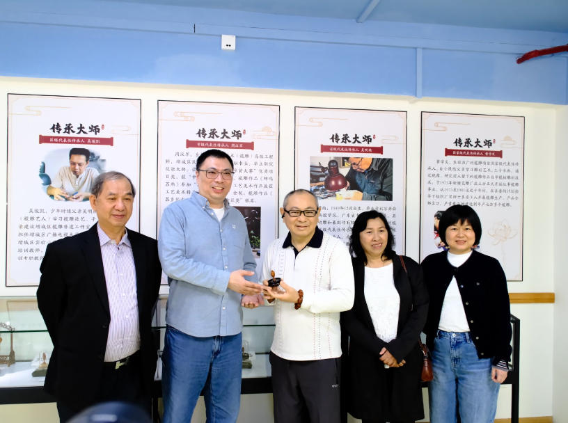 代表團先在學校領導陪同下參觀中醫(yī)藥文化館、欖雕工藝大師工作室、人工智能創(chuàng)新中心、校園特色景觀。他們對學校的校園建設給予了充分的肯定。