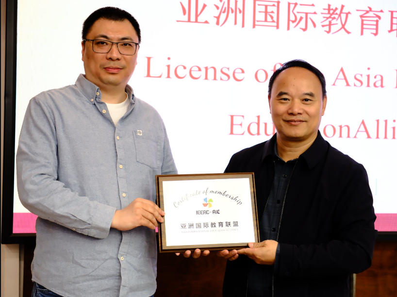 亞洲國際教育聯(lián)盟秘書長楊華昕授予我校“亞洲教育聯(lián)盟”獎牌