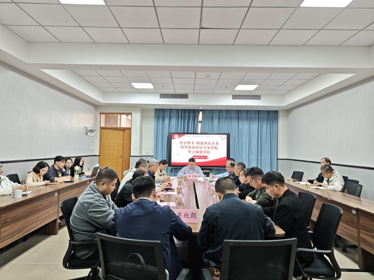 2025 年 12 月 17 日,廣州華立科技職業(yè)學(xué)院城建學(xué)院與云浮市建設(shè)咨詢行業(yè)協(xié)會聯(lián)合舉辦 “校企攜手?賦能建筑未來” 交流座談會,會議由城建學(xué)院徐耀鑒院長組織。云浮市住房和城鄉(xiāng)建設(shè)局總工程師羅云子、科長田慶輝,廣東翔順建筑設(shè)計有限公司院長兼協(xié)會會長許平及多家行業(yè)龍頭企業(yè)負責(zé)人組成的專家團,與華立職院校長助理張劍鋒、城建學(xué)院院長徐耀鑒、黨總支書記/副院長吳毅強、院長助理馬芳等骨干教師代表齊聚,共話裝配式建筑行業(yè)趨勢,共謀校企合作路徑。