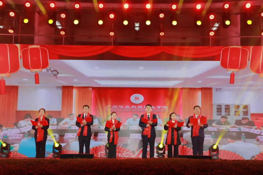 廖校長指出2025年是國家“十四五”規(guī)劃的收官之年,也是學(xué)校深化改革、提質(zhì)增效的關(guān)鍵之年。他深情回顧了過去一年全體華立人用智慧與汗水澆灌出的累累碩果,一是黨建引領(lǐng)結(jié)碩果,思政育人譜新篇。黨委書記思政“第一課”入選省精品文集,1個支部獲評省黨建樣板支部,案例榮登省百優(yōu)榜單,6個二級學(xué)院黨組織與企村結(jié)對共建,筑牢了育人紅色根基。二是內(nèi)涵建設(shè)提質(zhì)效,辦學(xué)水平再躍升。校友會2026中國高職院校(I類)排名躍升至第45名,省教育廳科研立項15項,出版教材31本,學(xué)生獲省級以上獎項471項,人工智能與信創(chuàng)團(tuán)隊獲省立項,榮膺中國產(chǎn)學(xué)研深度融合好案例。三是名師匯聚提能級,隊伍建設(shè)顯成效。新增二級教授、廣東省教學(xué)名師、廣東省職業(yè)教育先進(jìn)個人、廣東省勞動模范、南粵優(yōu)秀教育工作者、南粵優(yōu)秀教師共11人,引進(jìn)國家級非遺傳承人、省級工藝美術(shù)大師打造“名師+名匠”團(tuán)隊,9名教師入選省市級農(nóng)村科技特派員專家?guī)?。四是人才培養(yǎng)結(jié)碩果,招生就業(yè)雙豐收。錄取新生創(chuàng)歷史新高,夏季高考成為全省同類院校唯一一次性滿檔高校,2025屆畢業(yè)生就業(yè)率達(dá)92.92%、專業(yè)對口率87.56%,170名學(xué)子參軍入伍,獲評“廣東省國防教育先進(jìn)單位”。五是服務(wù)大局擔(dān)使命,彰顯作為譜新篇。面向全省高職院校合作舉行“廣東省人工智能賦能職業(yè)教育高質(zhì)量發(fā)展交流活動”“廣東省學(xué)生體育藝術(shù)聯(lián)合會棋類分會第二屆會員大會”;承辦了“廣州市甘泉文化研究會2025年年會暨第二屆理事會”;。積極投身“百千萬工程”,組建32支校級社會實(shí)踐隊深入增城、惠州、清遠(yuǎn)等地,累計服務(wù)超6000人次,“繪夢連山突擊隊”入選廣東“百千萬工程”突擊隊行動典型案例;志愿服務(wù)364場次、88000小時,榮獲“優(yōu)秀志愿服務(wù)組織單位”等稱號,收獲各類感謝信、錦旗等20余項。他表示,這每一份成績都凝聚著全體華立人的智慧與汗水,是大家的堅守與付出推動學(xué)校在高質(zhì)量發(fā)展道路上穩(wěn)步前行。