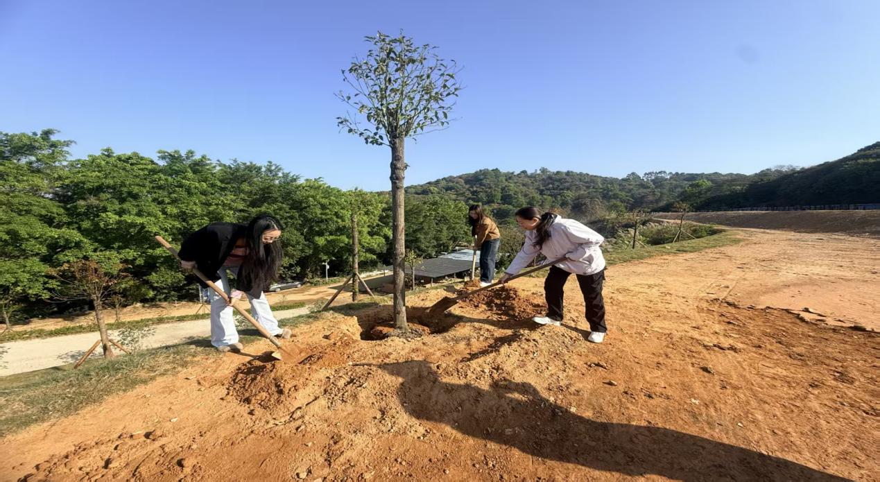 為深入貫徹“綠美廣東”生態(tài)建設(shè)部署,踐行綠色發(fā)展理念,著力營造愛綠、植綠、護(hù)綠的良好校園氛圍,進(jìn)一步提升校園生態(tài)文明建設(shè),我校開展“植此青綠,美在華立“——2026綠美校園生態(tài)文化節(jié)。3 月12日上午9點(diǎn)00分,我校在校園田徑場綠化區(qū)域隆重舉行春季植樹活動(dòng)。廣州華立科技職業(yè)學(xué)院副校長高堯來、保衛(wèi)總務(wù)處處長陳勝軍、校團(tuán)委書記張超越、保衛(wèi)總務(wù)處副處長何志斌、教師代表及學(xué)生代表共同參與本次活動(dòng)。