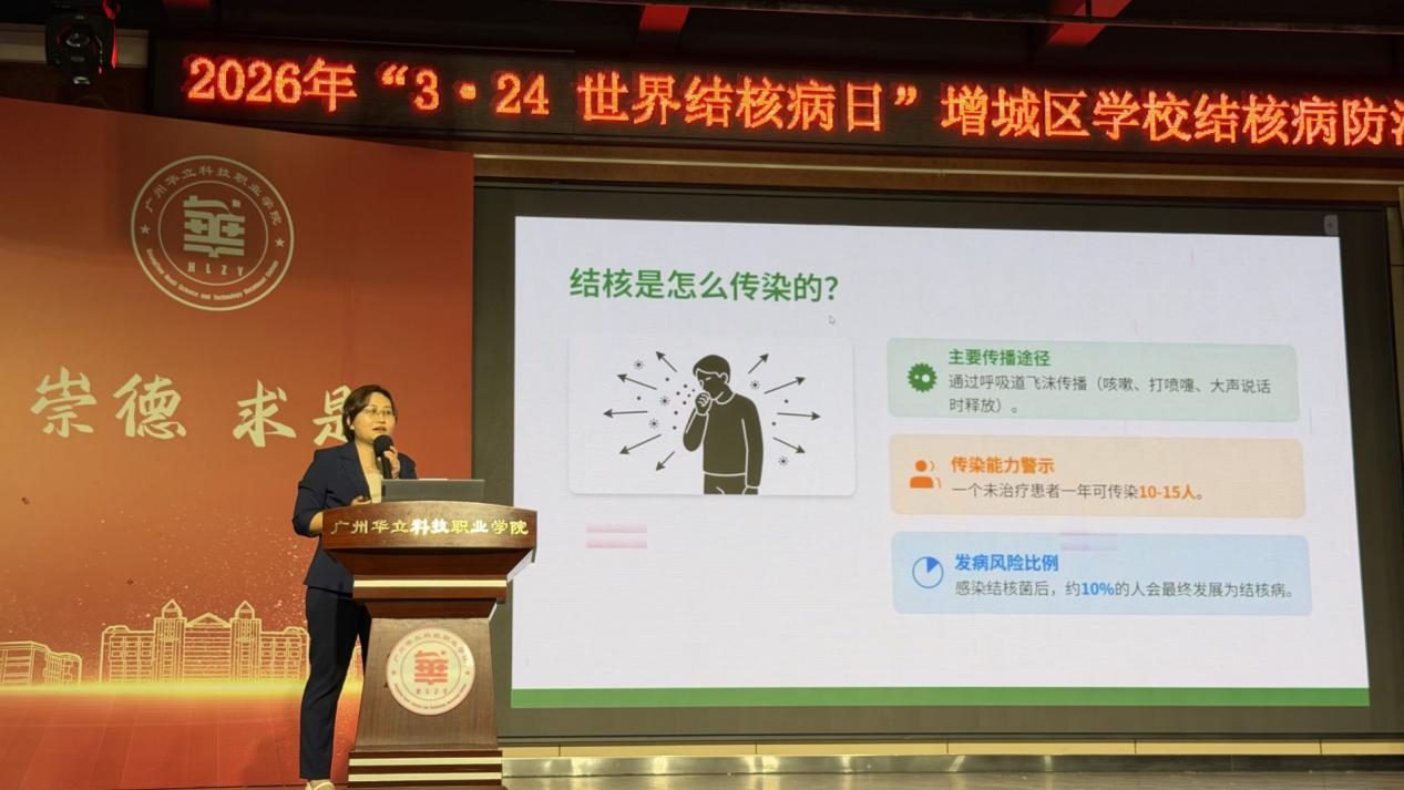 為深入貫徹落實(shí)國(guó)家關(guān)于結(jié)核病防治工作的部署要求,進(jìn)一步提升師生健康素養(yǎng),營(yíng)造健康安全的校園環(huán)境,2026年3月23日下午15:00,廣州華立科技職業(yè)學(xué)院在圖書館八樓隆重舉行2026年“3·24世界結(jié)核病日”增城區(qū)學(xué)校結(jié)核病防治宣講活動(dòng)。大會(huì)以“結(jié)核病預(yù)防”為主題,增城區(qū)疾控中心、廣州醫(yī)科大學(xué)附屬第四醫(yī)院、廣州市增城區(qū)增江街社區(qū)衛(wèi)生服務(wù)中心、廣東省華立技師學(xué)院、廣州市增城區(qū)樂(lè)眾社會(huì)工作服務(wù)中心及學(xué)校師生代表共同出席本次活動(dòng)。