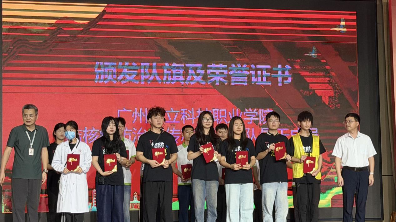在隨后的頒發(fā)儀式上,區(qū)疾控中心領(lǐng)導(dǎo)與校領(lǐng)導(dǎo)共同為志愿服務(wù)隊(duì)頒發(fā)隊(duì)旗及志愿服務(wù)榮譽(yù)證書,并為指導(dǎo)老師張劍鋒、陳勝軍、何志斌、楊靈鼎四位指導(dǎo)老師頒發(fā)證書,充分肯定他們?cè)诮Y(jié)核病防治宣傳教育工作中的積極貢獻(xiàn)。隨后,區(qū)疾控中心領(lǐng)導(dǎo)向?qū)W校移交結(jié)核病防治“宣傳物料”。