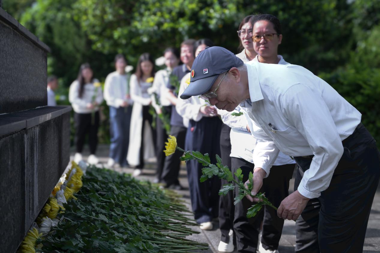 現(xiàn)場(chǎng),學(xué)校馬克思主義學(xué)院何楚婷老師以“銘記烽火歲月 傳承英雄精神”為主題,講述東江縱隊(duì)在大埔圍村的抗戰(zhàn)事跡,重溫革命先輩保家衛(wèi)國(guó)的崢嶸歲月。甘泉頌合唱團(tuán)合唱《如愿》,全體人員繞行紀(jì)念碑一周,敬獻(xiàn)鮮花,寄托對(duì)先烈的哀思與敬意。