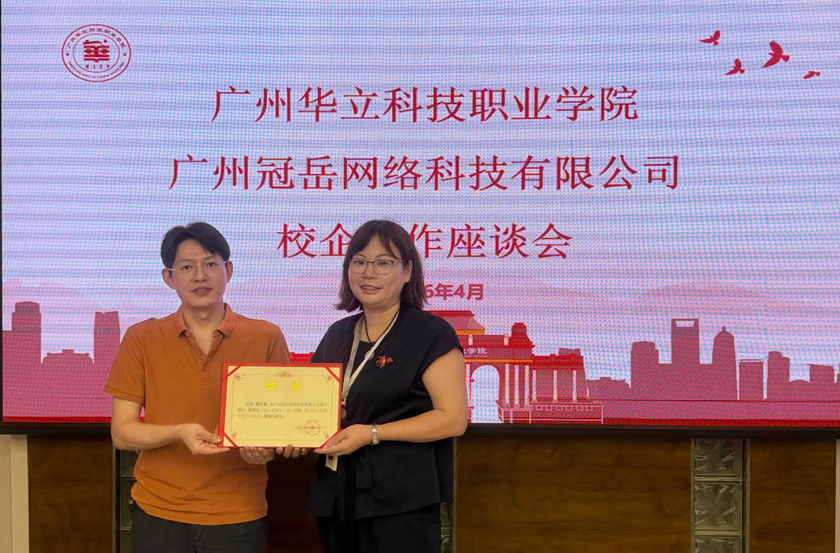 為進一步凝聚校企智慧,強化合作紐帶,廣州冠岳網(wǎng)絡(luò)科技有限公司現(xiàn)場正式聘任:藝術(shù)與傳媒學(xué)院院長朱君、黨總支書記陳改梅、