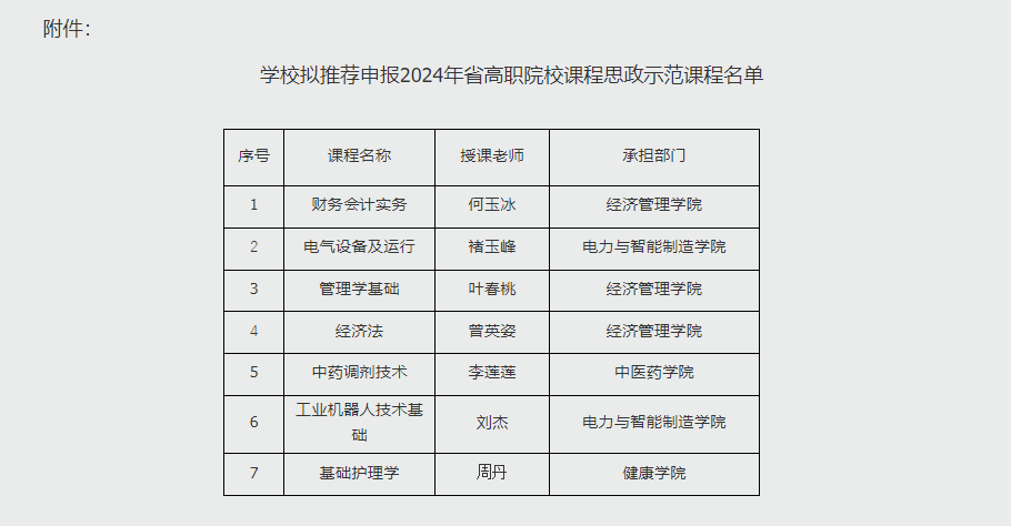 關(guān)于推薦2024年省高職院校課程思政示范課程名單的公示:
