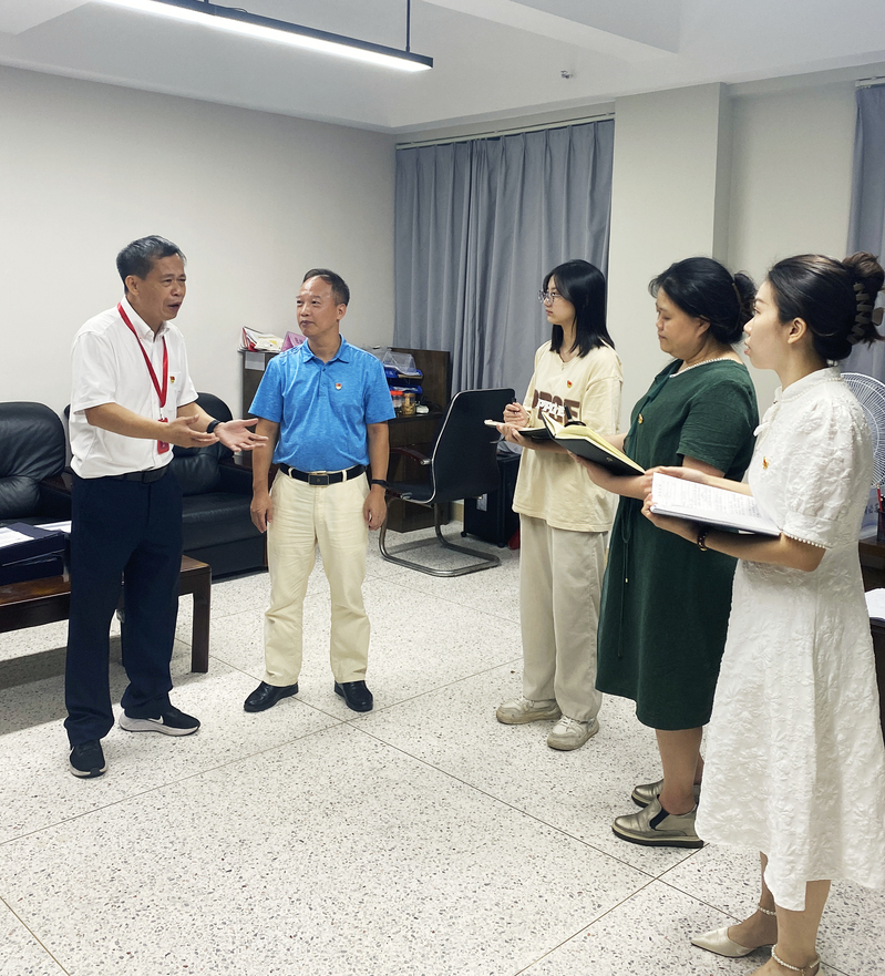 羅紀(jì)旋組長(zhǎng)(左一)督促落實(shí)會(huì)議精神