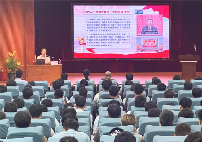 講座圍繞“中國(guó)式現(xiàn)代化的探索歷程、中國(guó)式現(xiàn)代化的中國(guó)特色、中國(guó)式現(xiàn)代化的本質(zhì)要求、中國(guó)式現(xiàn)代化的戰(zhàn)略支撐、大學(xué)生在新征程奮發(fā)成才”五個(gè)方面展開(kāi)。陳良聲以寬廣深邃的大歷史觀,對(duì)中國(guó)式現(xiàn)代化進(jìn)行了深入解讀、深刻闡釋。他結(jié)合近百年來(lái)復(fù)雜的國(guó)際和國(guó)內(nèi)環(huán)境,深刻論述了“為什么要推進(jìn)中國(guó)式現(xiàn)代化”及其必要性和重要意義。結(jié)合中國(guó)式現(xiàn)代化的“中國(guó)特色”和“本質(zhì)要求”這兩個(gè)重點(diǎn),陳良聲向同學(xué)們深入細(xì)致地講解“什么是中國(guó)式現(xiàn)代化”,幫助大家更清晰地理解中國(guó)式現(xiàn)代化的內(nèi)在邏輯、主要特征和豐富內(nèi)涵,引導(dǎo)同學(xué)們堅(jiān)定理想信念,深刻理解新時(shí)代新青年的歷史使命,進(jìn)一步激發(fā)他們?cè)谥袊?guó)式現(xiàn)代化新征程上的擔(dān)當(dāng)和熱情。