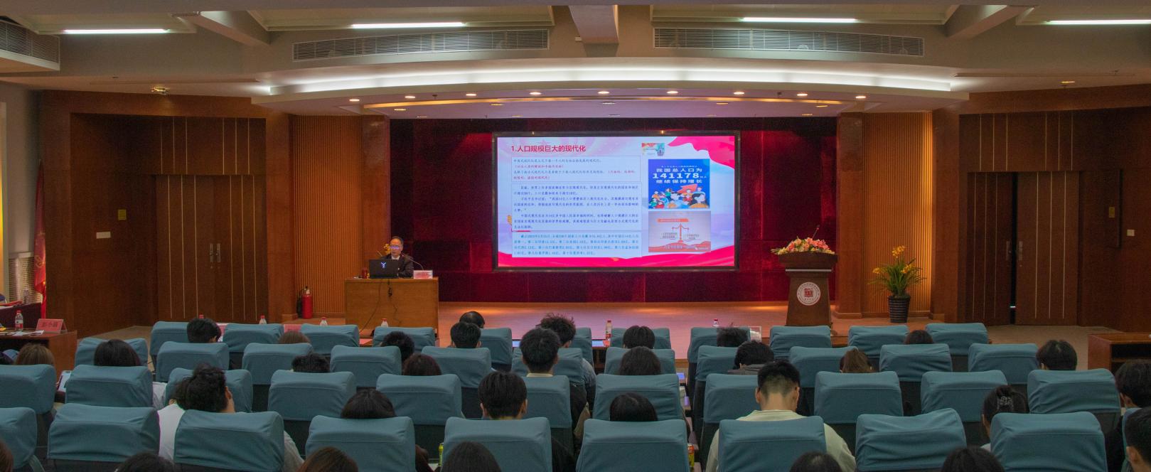 為了引導(dǎo)廣大學(xué)生深入學(xué)習(xí)黨的二十大精神、深刻理解以中國(guó)式現(xiàn)代化全面推進(jìn)中華民族偉大復(fù)興的重大意義,11月16日下午,學(xué)校黨委書記陳良聲在圖書館一號(hào)報(bào)告廳為學(xué)?!扒囫R工程”培訓(xùn)班開講了第一課:在實(shí)現(xiàn)中國(guó)式現(xiàn)代化新征程上勇當(dāng)先鋒。學(xué)?!扒囫R工程”培訓(xùn)班全體學(xué)員以及學(xué)校黨委辦公室、馬克思主義學(xué)院全體教師參加。