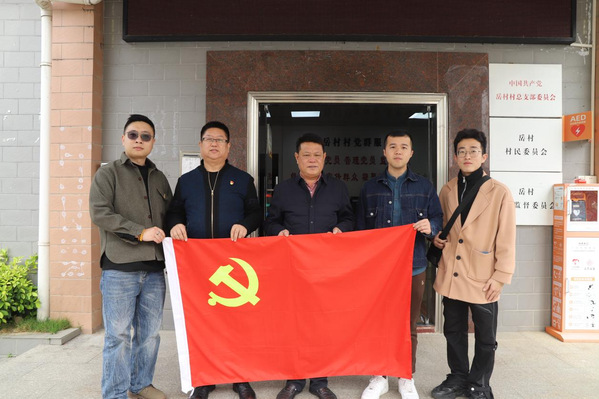 計算機信息工程學院黨總支書記宋海泉(左二)、第二黨支部書記朱志豪(左一)、組織委員張栢桐(右一)與岳村村黨總支部書記劉木晃(左三)、黨總支部副書記劉宇華(右二)合影留念