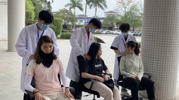 健康協(xié)會干事為師生進行按摩推拿