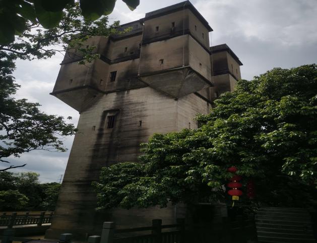 除了悠久的歷史淵源和僑鄉(xiāng)文化外,保存完整的碉樓也是震撼人心的古建筑之一。其中,寧遠(yuǎn)樓是廣州地區(qū)唯一的水上碉樓,現(xiàn)為廣州市文物保護(hù)單位。該樓取寧靜致遠(yuǎn)之意,樓內(nèi)功能齊全,有瞭望口、機(jī)槍口、炮口及炮架移動的軌道、食水井和廁所等,還有從天臺通往各層的傳聲孔。在1941年日軍攻打瓜嶺村時(shí),這座碉樓因其易守難攻的特點(diǎn),保護(hù)了當(dāng)時(shí)全村人的性命。
