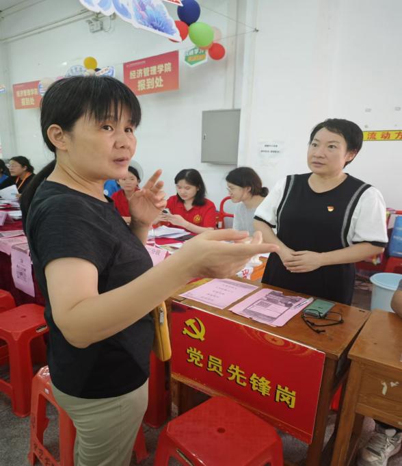 在迎新活動(dòng)中,黨員先鋒崗成為了亮麗的風(fēng)景線。由黨員和學(xué)生黨建小組組成的迎新團(tuán)隊(duì)提前就位,以飽滿的熱情和周到的服務(wù)迎接新生的到來。師生黨員們耐心地引導(dǎo)新生及家長(zhǎng)們完成報(bào)道流程,解答他們關(guān)于校園生活、學(xué)習(xí)安排等方面的疑問,營(yíng)造出溫馨、和諧的迎新氛圍。
