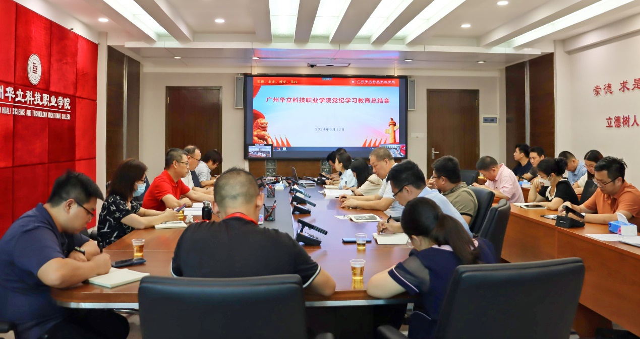 9月12日下午,學(xué)校在行政樓305會議室召開了黨紀(jì)學(xué)習(xí)教育總結(jié)會,會議學(xué)習(xí)了習(xí)近平總書記關(guān)于黨紀(jì)學(xué)習(xí)教育的重要指示精神,對學(xué)校黨紀(jì)學(xué)習(xí)教育進(jìn)行全面總結(jié),并對持續(xù)推進(jìn)黨紀(jì)學(xué)習(xí)教育常態(tài)化長效化進(jìn)行部署。黨委書記陳良聲主持會議并作工作總結(jié)。學(xué)校領(lǐng)導(dǎo)、黨委委員、紀(jì)委委員、黨委各部門、各二級黨組織負(fù)責(zé)人出席,云浮校區(qū)的相關(guān)領(lǐng)導(dǎo)通過視頻連線參加。