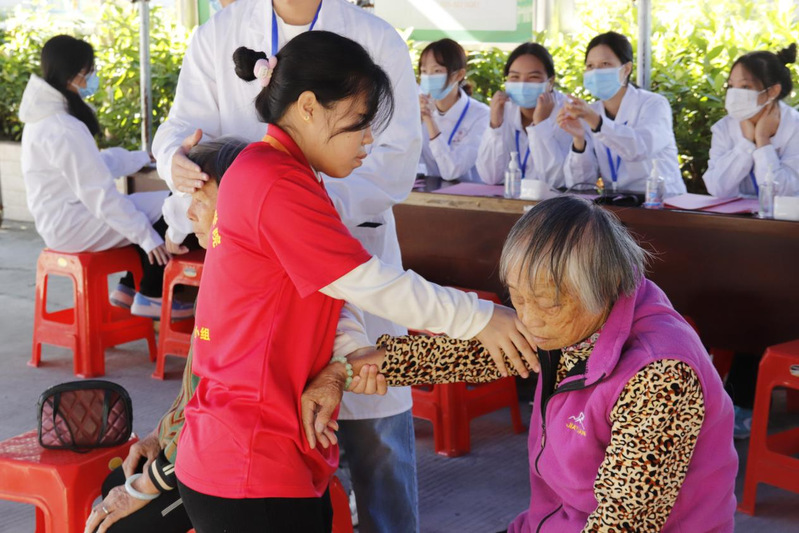 (黨建小組志愿者為村民推拿)