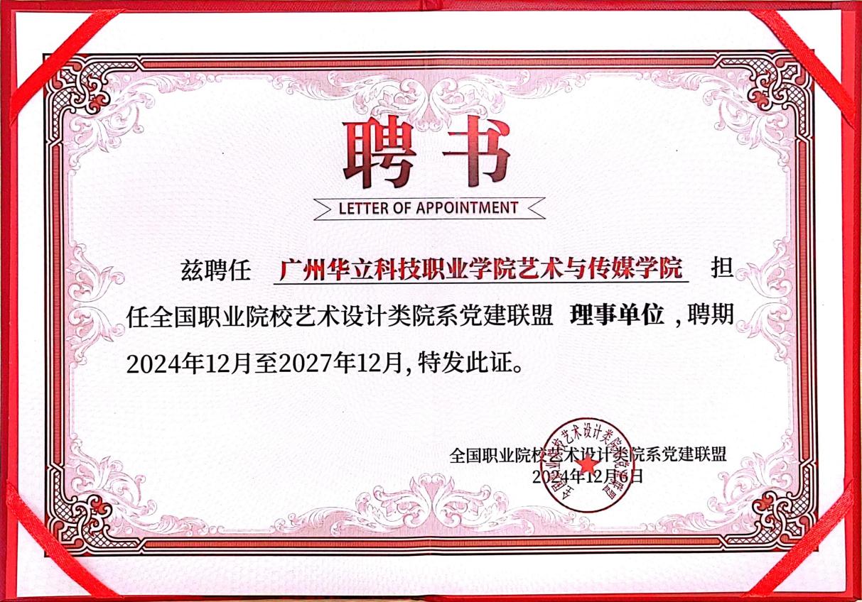 廣州華立科技職業(yè)學(xué)院藝術(shù)與傳媒學(xué)院,作為全國(guó)職業(yè)院校藝術(shù)設(shè)計(jì)院系黨建聯(lián)盟的理事單位,將積極踐行開(kāi)放、共享、共進(jìn)的原則,致力于深化聯(lián)盟成員間的多維度交流與合作,攜手共創(chuàng)黨建工作與藝術(shù)設(shè)計(jì)教育教學(xué)工作雙融雙促的新范式,為培養(yǎng)兼具藝術(shù)造詣與高尚品德,且具備強(qiáng)烈社會(huì)責(zé)任感與時(shí)代使命感的藝術(shù)設(shè)計(jì)人才奠定堅(jiān)實(shí)基礎(chǔ)。