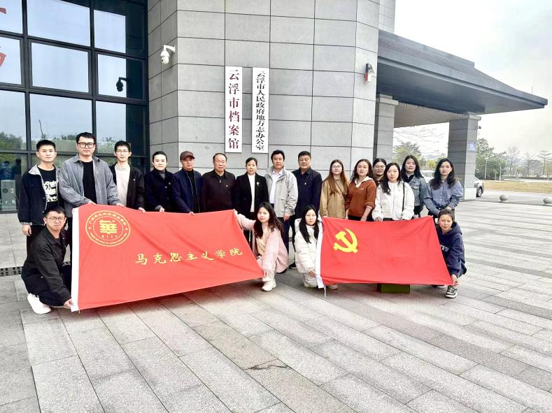 2月19日下午,馬克思主義學院增城與云浮兩校區(qū)教師團隊在廖良初院長帶領下,前往云浮市檔案館、市地方志辦“大思政課”實踐教學基地,開展參觀學習及交流合作活動。在云浮市檔案館副館長彭梅芳、收集保管科科長吳勇華、資政服務科科長唐小玲的陪同和講解員的講說下,教師們深入了解了云浮市域豐富的歷史文化和紅色資源,聽取和參觀了地方黨史、英雄人物及革命事跡的專題宣傳片和珍貴檔案資料,深刻感受到檔案工作在存史、資政、凝心、育人等多方面的重要作用。