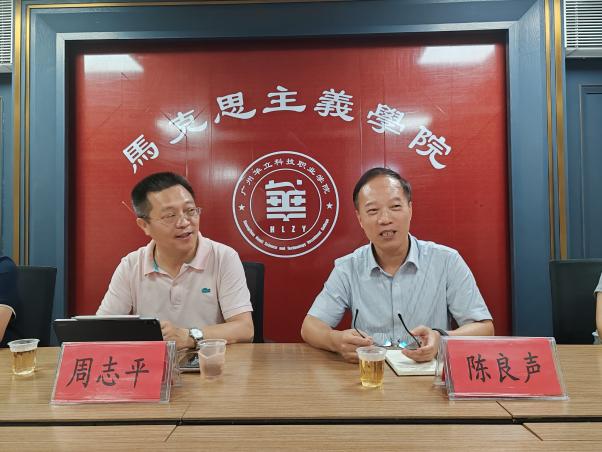 隨后,周教授來到G1-314馬克思主義學院會議室,組織思政課教師座談。首先,學校黨委陳良聲書記代表學校黨政班子,對周志平教授蒞臨我校指導工作表示熱烈歡迎和衷心感謝。他從構(gòu)建“三全育人”大思政格局、深化課堂教學改革創(chuàng)新、推進“課程思政”協(xié)同建設(shè)、打造“甘泉文化”地方特色文化育人品牌、建立校地宣傳思政聯(lián)盟、完善馬克思主義學院建設(shè)體系等六個維度系統(tǒng)總結(jié)學校思政課建設(shè)成效。馬克思主義學院院長廖良初教授就馬克思主義學院的機構(gòu)設(shè)置、課程開設(shè)情況、師資隊伍建設(shè)、教研活動開展、科學研究和服務(wù)地方經(jīng)濟社會發(fā)展、目前存在的不足等工作進行了詳細匯報。主管教學工作的副校長陳顯強教授從學校教學管理層面,介紹了學校加強思政課教學管理的工作經(jīng)驗。部分思政課教師就青年老師如何參加教學比賽、如何做課題研究等進行了發(fā)言。