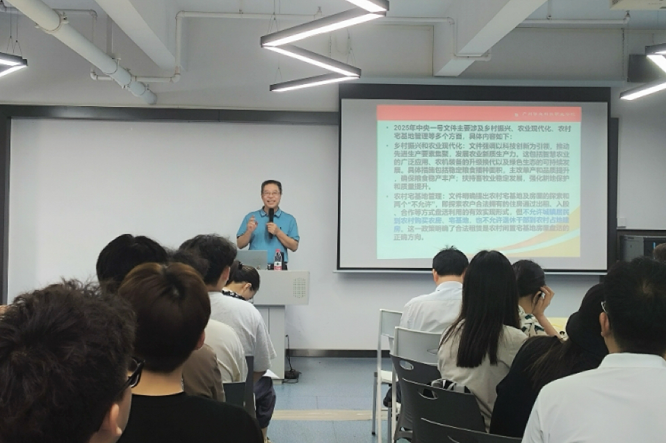 陳校為師生解讀2025年中央1號文件精神與鄉(xiāng)村全面振興規(guī)劃,闡述“三農(nóng)”問題在中國社會主義現(xiàn)代化建設(shè)時(shí)期“重中之重”的地位,強(qiáng)調(diào)要以科技創(chuàng)新為引領(lǐng),發(fā)展農(nóng)業(yè)新質(zhì)生產(chǎn)力。