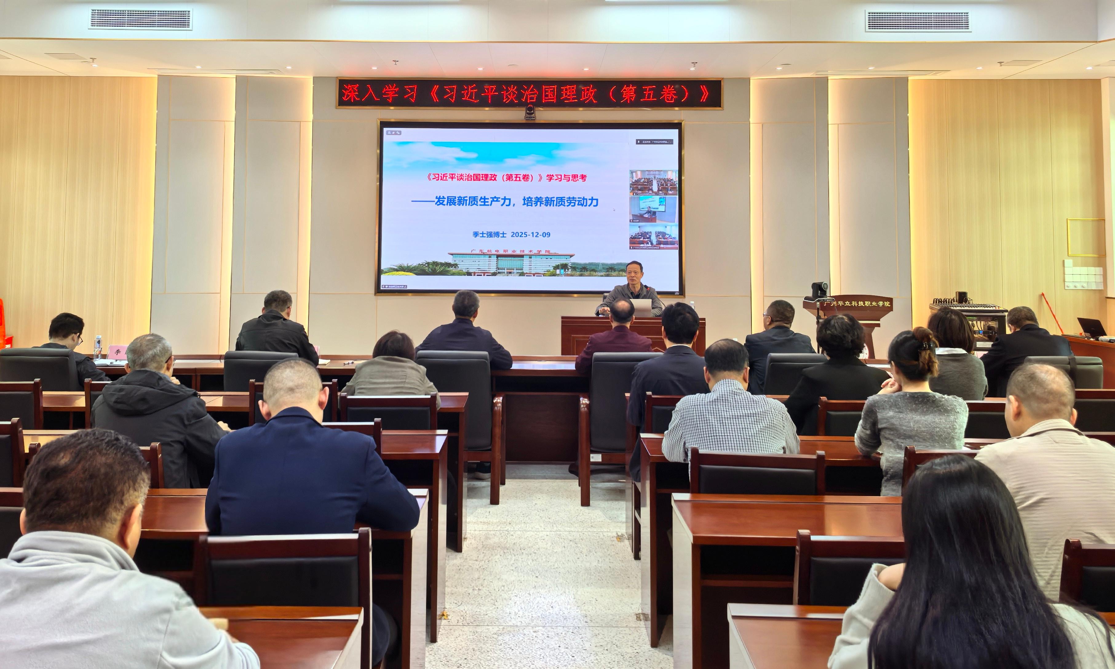 季士強博士以《<習近平談治國理政>(第五卷)學習與思考》為題,重點圍繞“因地制宜發(fā)展新質(zhì)生產(chǎn)力,實現(xiàn)高質(zhì)量發(fā)展”——這個《習近平談治國理政》(第五卷)最富理論創(chuàng)意和實踐開新的思想,通過第五卷的思想主線、新思想指引下發(fā)展新質(zhì)生產(chǎn)力的內(nèi)涵要求、結合新思想對高職專業(yè)課建設的思考”三個層面,闡明了今后一個階段我國現(xiàn)代化建設和民族復興事業(yè)“干什么、怎么干”的問題,既為我們學好《習近平談治國理政》(第五卷)作了一個非常有價值的導讀,也為我們做好新時代職業(yè)教育工作進行了很好的啟發(fā)。