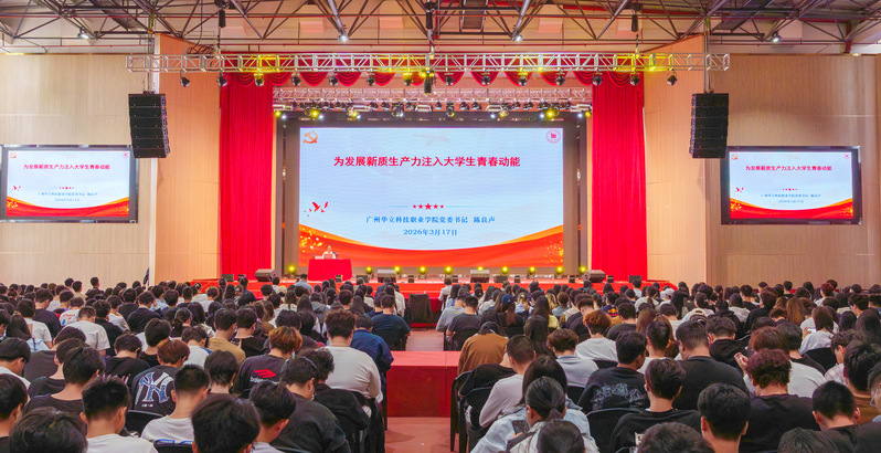 3月17日下午,云浮校區(qū)文體樓八樓報告廳內(nèi)座無虛席,800余名師生代表齊聚一堂,共同聆聽了學(xué)校黨委書記陳良聲同志主講的2026年春季學(xué)期“思政第一課”。本次課程以“為發(fā)展新質(zhì)生產(chǎn)力注入大學(xué)生青春動能”為主題,既有理論高度,又貼近學(xué)生實際,引發(fā)熱烈反響。學(xué)校黨委副書記、副校長高堯來,學(xué)校黨委委員、校長助理張劍鋒,云浮校區(qū)各二級黨組織負責(zé)同志及馬克思主義學(xué)院教師一同參加學(xué)習(xí)。課程由學(xué)校黨委副書記、副校長王洪艷主持。
