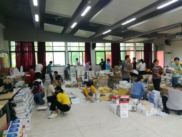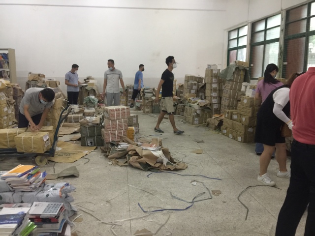 為了降低疫情對(duì)學(xué)業(yè)的影響,方便學(xué)生學(xué)習(xí)復(fù)習(xí),保障線上教學(xué)質(zhì)量,學(xué)校決定向?qū)W生免費(fèi)郵寄教材。教務(wù)處前期做了大量統(tǒng)計(jì)、匯總工作,并與教材供應(yīng)商、快遞公司多次溝通協(xié)商,在5月14-16日期間,教務(wù)處和各二級(jí)學(xué)院的老師們化身“臨時(shí)快遞分揀員”,紛紛返校連同快遞公司人員將教材進(jìn)行拆包、分揀、裝袋、貼單和郵寄。
