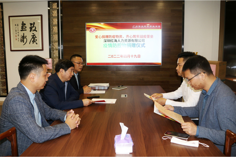 2022年4月19日,深圳紅海人力資源有限公司副總經理尹合明,項目經理李鵬一行到我校捐贈防疫物資和開展校企合作交流。校長易健民,校外教學與就業(yè)處、華立教育集團人力資源部負責同志熱情接待了公司代表,并向深圳紅海人力資源有限公司工作人員表示歡迎和感謝。