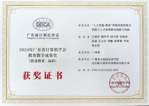 2024年12月14日,廣東省計(jì)算機(jī)學(xué)會(huì)40周年慶典暨2024年學(xué)術(shù)年會(huì)和粵港澳大灣區(qū)數(shù)字人生產(chǎn)與驅(qū)動(dòng)技術(shù)高端論壇在東莞隆重舉行,會(huì)上宣布了2024年廣東省計(jì)算機(jī)學(xué)會(huì)教育教學(xué)成果獎(jiǎng)的獲獎(jiǎng)名單。我校計(jì)算機(jī)信息工程學(xué)院與企業(yè)聯(lián)合申報(bào)的《“人工智能+教育”的職業(yè)院校復(fù)合型數(shù)字人才培養(yǎng)模式創(chuàng)新與實(shí)踐》項(xiàng)目榮獲“2024年廣東省計(jì)算機(jī)學(xué)會(huì)教育教學(xué)成果(職業(yè)教育-高職)”二等獎(jiǎng)。這一榮譽(yù)標(biāo)志著學(xué)校在計(jì)算機(jī)教育教學(xué)改革上取得的可喜成績,學(xué)院創(chuàng)新性的實(shí)踐了“以人工智能為引領(lǐng)、以數(shù)字技術(shù)為核心、以實(shí)踐應(yīng)用為導(dǎo)向”的人才培養(yǎng)模式,為同類院校計(jì)算機(jī)專業(yè)教學(xué)改革樹立了新的標(biāo)桿。
