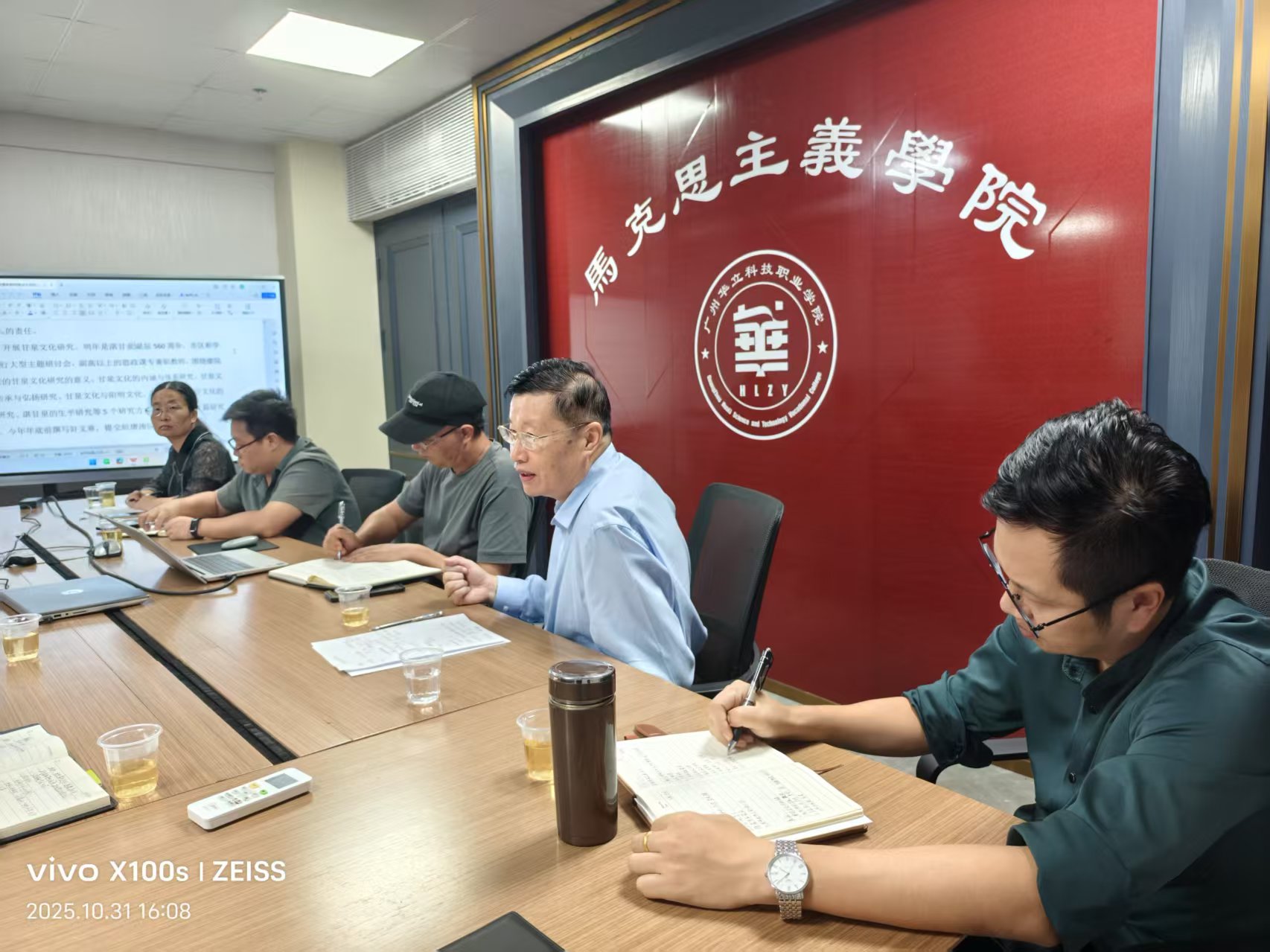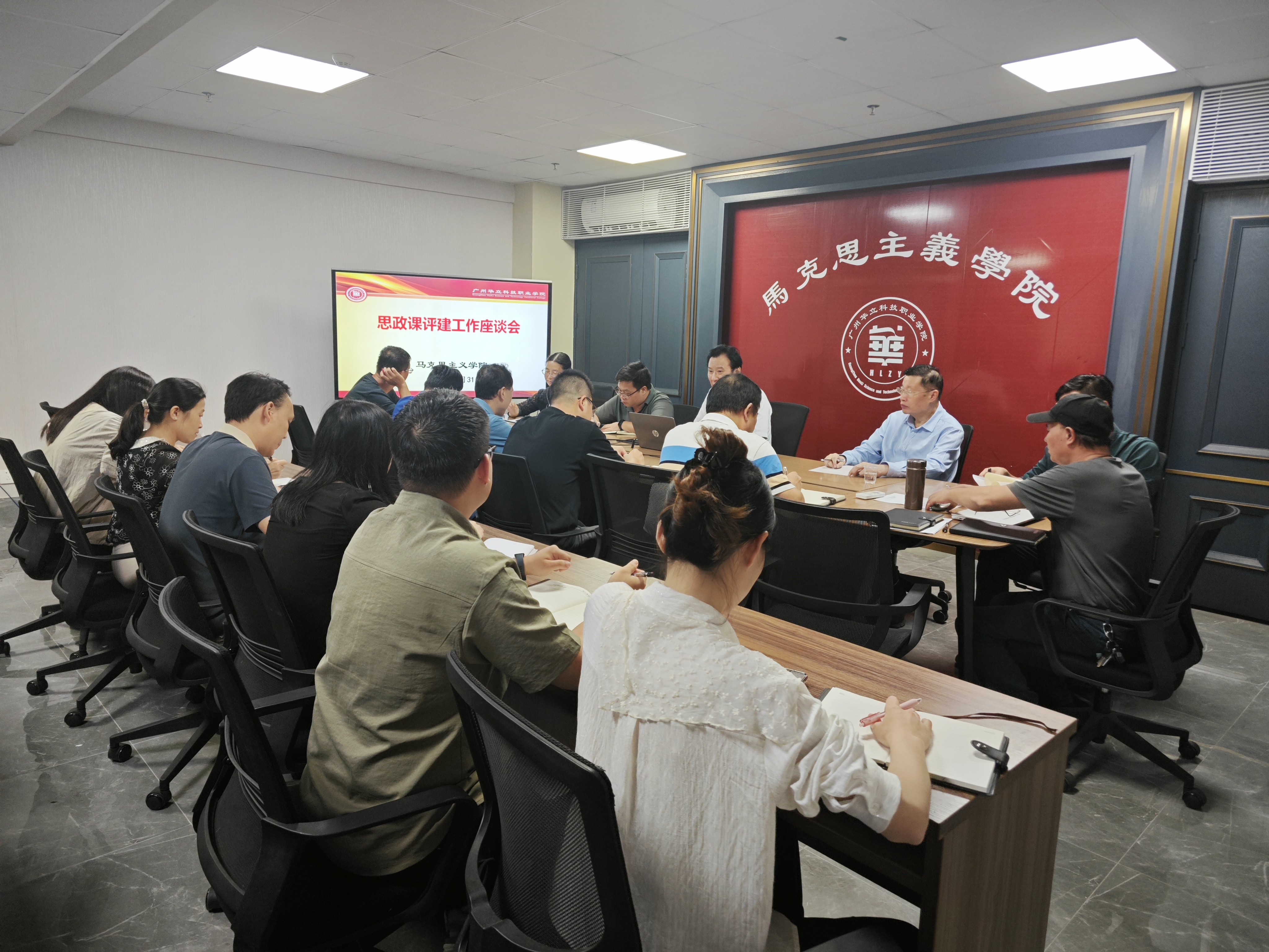 為全面貫徹落實教育部辦公廳《關(guān)于開展2025-2026學(xué)年高校思政課課堂教學(xué)提升行動的通知》精神,堅持不懈用習(xí)近平新時代中國特色社會主義思想鑄魂育人,增強全體思政課教師的責(zé)任感和敬業(yè)精神,提高課堂教學(xué)質(zhì)量,10月31日馬克思主義學(xué)院在G1-314會議室召開思政課評建工作座談會。廖良初院長主持會議,學(xué)校人事處處長鐘文浩、教務(wù)處副處長曾英姿、教學(xué)督導(dǎo)辦公室主任王焰安、藝傳學(xué)院院長朱君及全體思政課教師參加座談會。