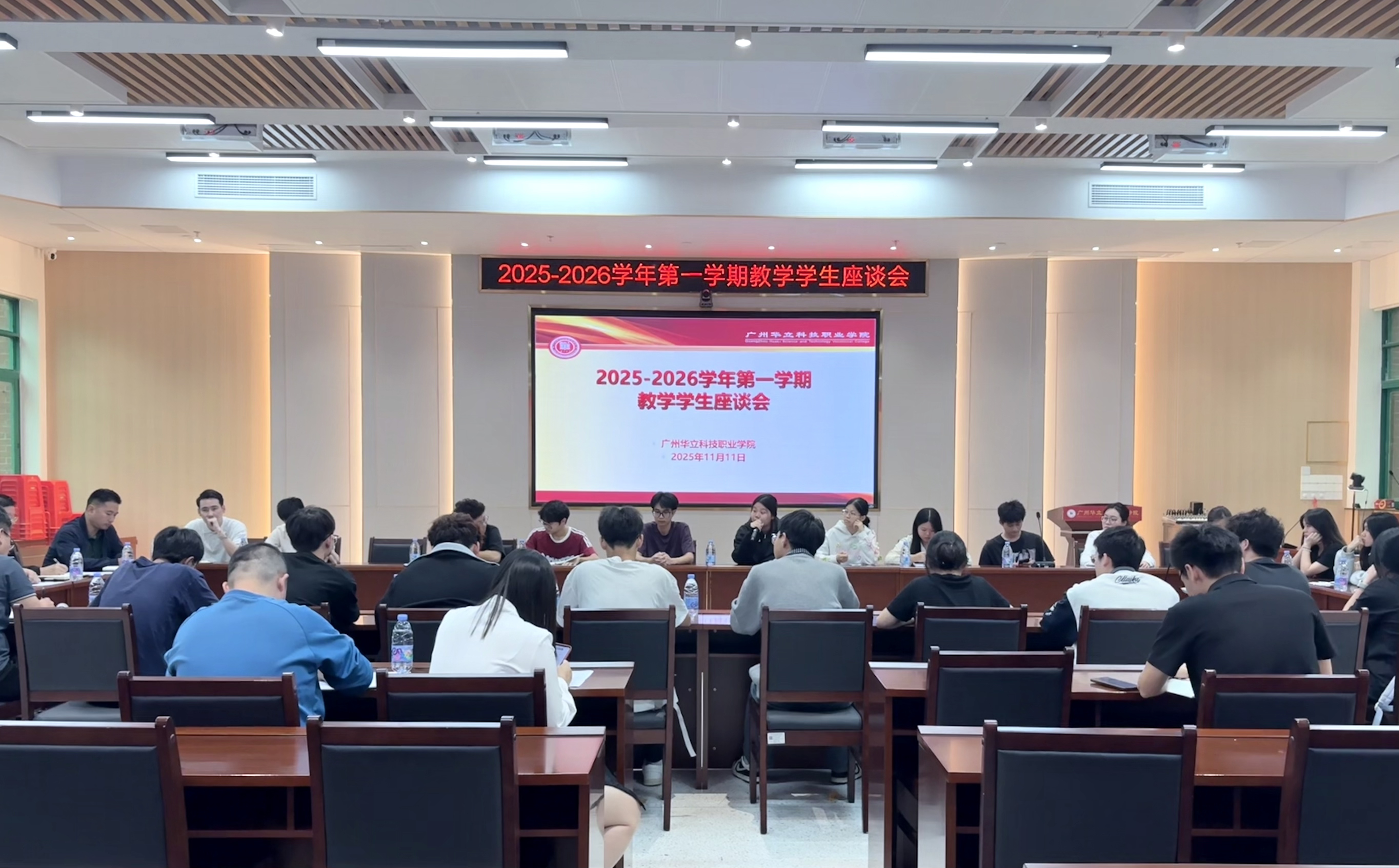 為加強教風學風建設,切實了解學生實際學習需求,11月11-12日,廣州校區(qū)、云浮校區(qū)分別在廣州校區(qū)圖書館104、云浮校區(qū)圖書館1樓會議室召開期中教學檢查學生座談會。座談會分別由廣州校區(qū)孫麗英處長及云浮校區(qū)李濤副處長主持,陳顯強、王洪艷副校長,教務處相關人員,學生處、實訓中心代表及各年級學生代表出席會議。
