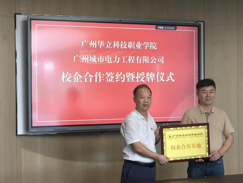 交流結(jié)束后,電力與智能制造學(xué)院院長(zhǎng)褚玉峰與廣州城市電力工程有限公司總裁沈桂渠續(xù)簽了校企合作協(xié)議書,陳良聲書記為企業(yè)授了“校企合作基地”牌子。