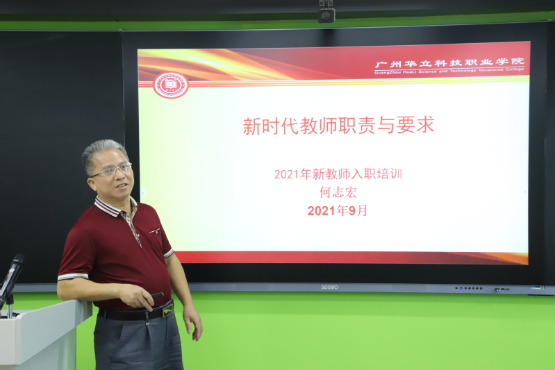 最后,教務(wù)處副處長(zhǎng)何志宏針對(duì)教師教學(xué)上的職責(zé)和要求展開了詳細(xì)的闡述。首先,提出習(xí)近平主席對(duì)高校教師的師德規(guī)范:“政治要強(qiáng)”“情懷要深”“思維要新”“視野要廣”“自律要嚴(yán)”“人格要正”。其次,針對(duì)教師使命,提倡實(shí)行課堂改革。要求新入職教師以學(xué)生為中心,進(jìn)行有效的教學(xué)管理。最后,提出了教師教學(xué)三大基本功,要求新入職教師從教學(xué)設(shè)計(jì)、教學(xué)技能要求和教學(xué)反思等方面全面提升自身教學(xué)能力。