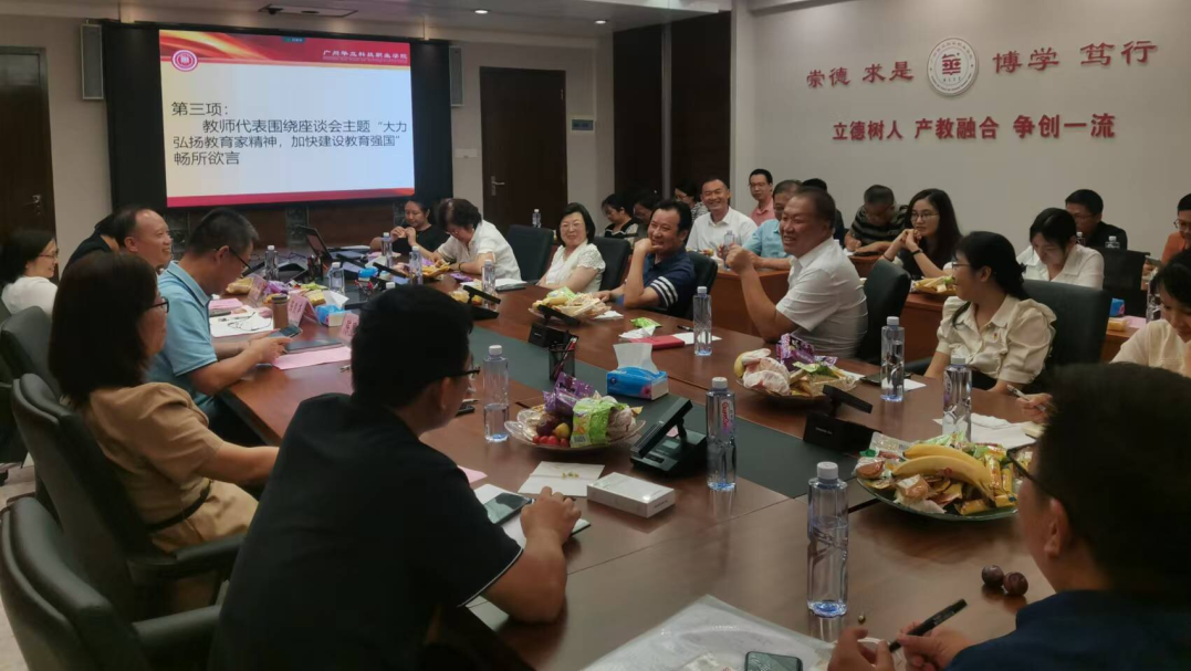 “課程思政”教學(xué)名師褚玉峰教授提到經(jīng)歷了幾個(gè)民辦學(xué)校進(jìn)行對比,來到華立之后特別有歸屬感,將扎根于此??蒲刑幪庨L劉蘭平教授講到學(xué)校經(jīng)過多年來的發(fā)展,有一定的科研基礎(chǔ)和科研氛圍,特別是今年廣東省教育廳公布了2023年省高等職業(yè)教育教學(xué)質(zhì)量與教學(xué)改革工程項(xiàng)目立項(xiàng)名單,我校共計(jì)22項(xiàng)質(zhì)量工程項(xiàng)目成功上榜,廣東省教育廳公布的2024年度普通高校重點(diǎn)科研平臺(tái)和項(xiàng)目、廣東省教育科學(xué)規(guī)劃項(xiàng)目以及廣東省普通高校認(rèn)定類科研項(xiàng)目的立項(xiàng)名單,我校共計(jì)獲得14項(xiàng)科研項(xiàng)目立項(xiàng),在多個(gè)科研領(lǐng)域立項(xiàng)工作方面成功實(shí)現(xiàn)了新的突破。中醫(yī)藥學(xué)院院長王暉教授提到學(xué)校的中醫(yī)學(xué)專業(yè)是省內(nèi)同類院校唯一有的專業(yè),招生火爆,今年報(bào)到的新生就多達(dá)1000多人,希望學(xué)校給予一定的政策傾斜。優(yōu)秀教師廖良初教授講到入職華立7年來,見證了馬克思主義學(xué)院的快速發(fā)展,回顧自己工作第一年第一次參加教師節(jié)也是獲得優(yōu)秀教師,今年第40個(gè)教師節(jié)也獲得優(yōu)秀教師特別欣慰,提出了“六有”感想,即:有規(guī)模、有歷史、有貢獻(xiàn)、有經(jīng)驗(yàn)、有影響、有希望。新入職教師代表黃宇惠談了剛?cè)肼毜谝淮螀⒓咏處煿?jié)和作為代表參加座談非常開心,表示將發(fā)揮自己在企業(yè)多年的經(jīng)驗(yàn)與學(xué)校職業(yè)教育緊密結(jié)合。