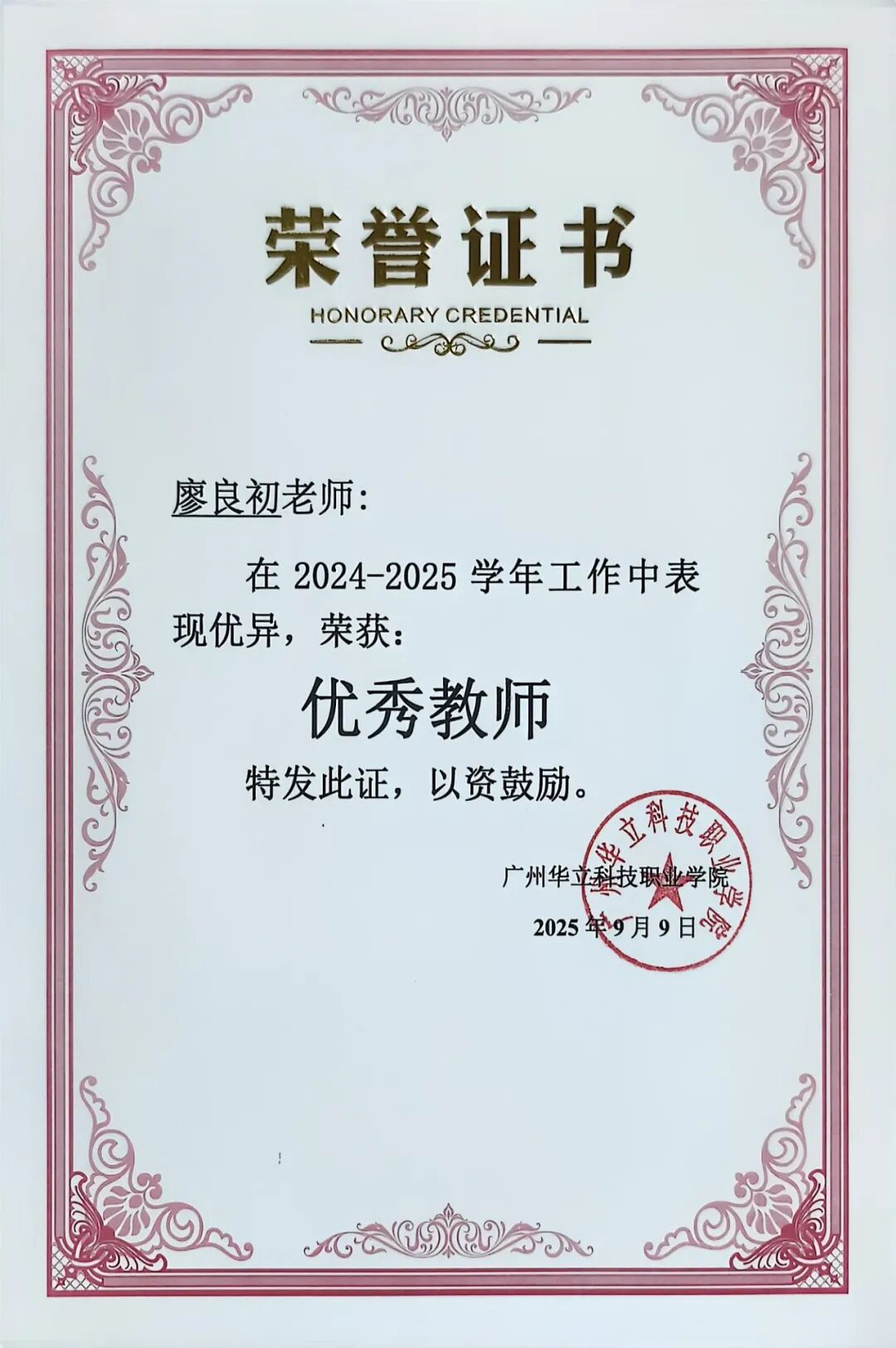 優(yōu)秀教師代表廖良初教授分享了自己從1985年我國(guó)第一個(gè)教師節(jié)獲評(píng)湖南岳陽地區(qū)優(yōu)秀教師,到如今第41個(gè)教師節(jié)再獲表彰的感慨歷程。他回顧國(guó)家教育事業(yè)及學(xué)校發(fā)展歷程,表達(dá)對(duì)職業(yè)教育前景的堅(jiān)定信心。