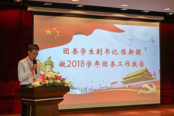 隨后,由校團委學生處副書記陳新穎同學進行2018年度工作總結。陳新穎同學表示校團委九大部門本著“引領思想、服務同學、鍛煉自我”為宗旨的指導下高效穩(wěn)定的完成各項工作。