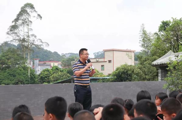 儀式第二項由增城區(qū)福和鎮(zhèn)育才小學(xué)古校長作國旗下的講話:相較大城市,我們學(xué)校地區(qū)偏遠,感謝此次廣州華立科技職業(yè)學(xué)院志愿者團隊給困難者提供一些慰問,為我們的孩子帶來豐富的課余生活。