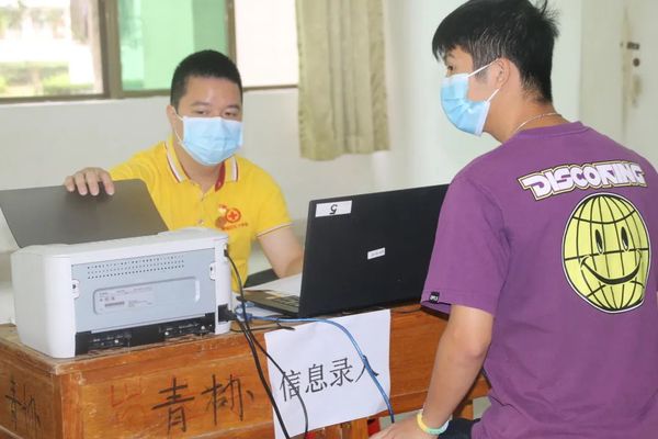 工作人員給獻血的同學們驗血型并錄入個人信息